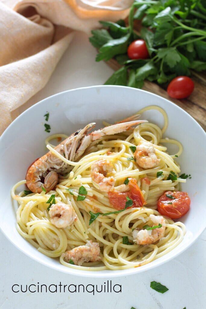 Spaghetti with langoustines and cherry tomatoes is an easy, quick, and delicious recipe made with fresh langoustines.