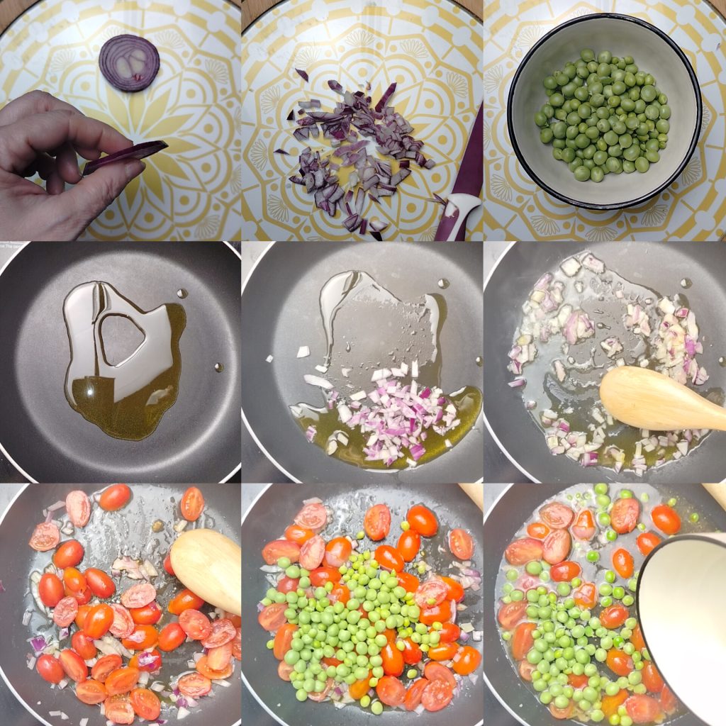 In a large pan, heat the extra-virgin olive oil and add the onion.