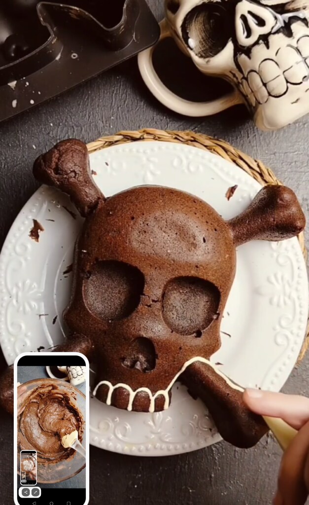 Sweet skull, a soft cocoa skull cake with ricotta and a perfect batter for filling small Halloween molds.