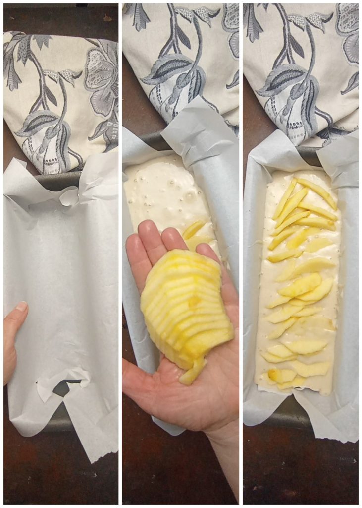 Pour it into a loaf pan lined with parchment paper and smooth it out.