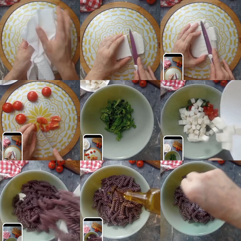 Wash, dry, and cut the cherry tomatoes into small pieces, and wash and dry the lamb’s lettuce well.