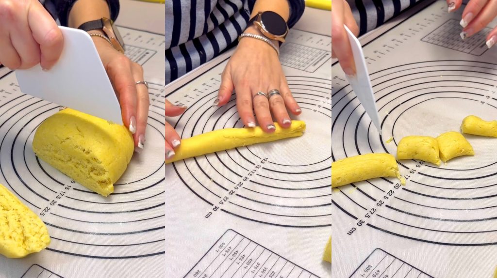 cut it into pieces. Form small logs, cut them into pieces of the desired size