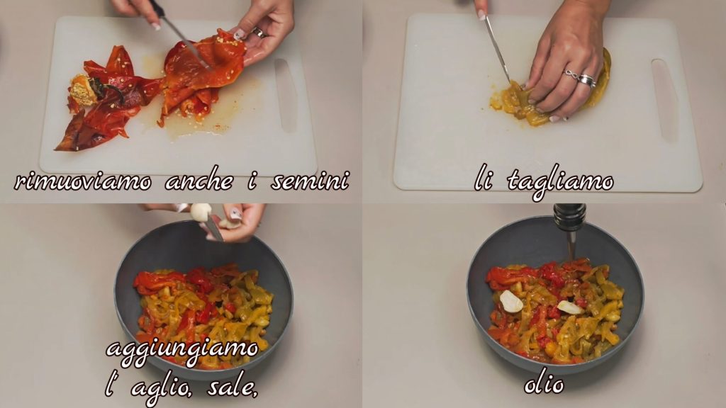 remove the seeds as well. Cut them into strips, then season to taste with garlic, salt, oil, and other spices as desired.