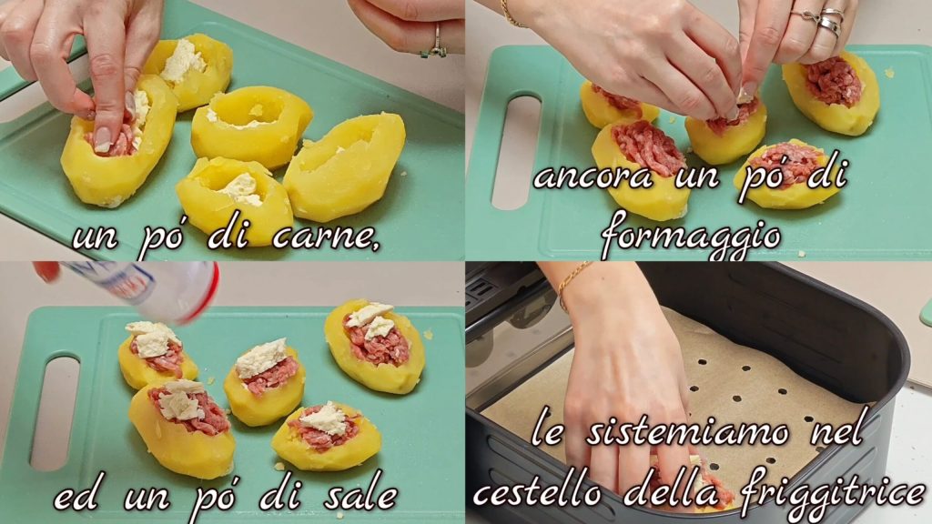 For the preparation of air fryer stuffed potatoes watch the video HERE.