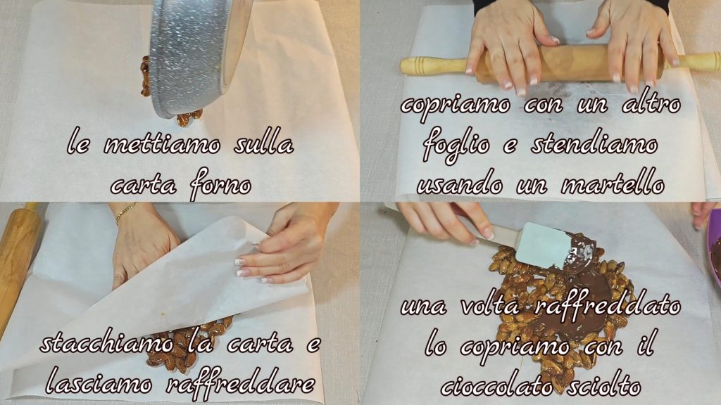 The preparation of dark chocolate almond brittle is very simple and quick, watch the video HERE.