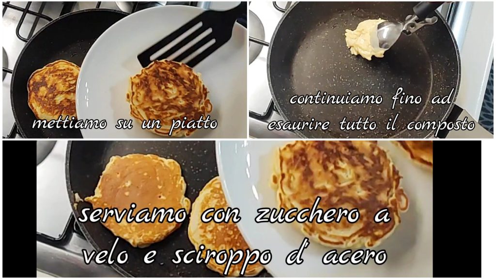 Brush the pan with oil, heat well, and pour the mixture using a spoon to form pancakes. Cook for a few minutes over low heat, then flip and cook for a few more minutes.