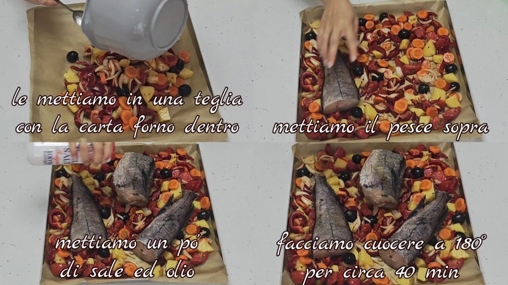 A main and side dish with a single healthy and very simple recipe to prepare! We can define it as a dinner saver recipe because I didn’t have time to go shopping and I found the cod in the freezer ☺️ I added some vegetables (those I had in the fridge 😅), seasoned everything and put it in the oven, so in a very few minutes I solved dinner 😉. Of course, you can also use other types of fish, not necessarily cod!