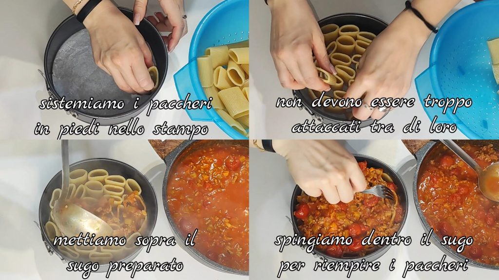 The preparation of the baked paccheri cake with meat sauce is very simple and quick, watch the video HERE.
