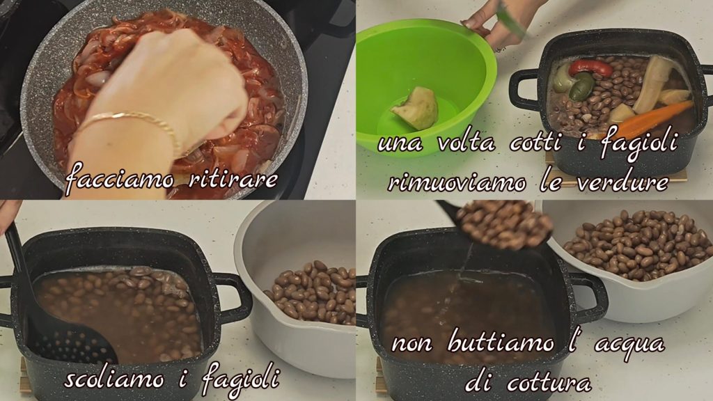 let it reduce. Once the beans are cooked, remove the vegetables and drain them but do not discard the water.