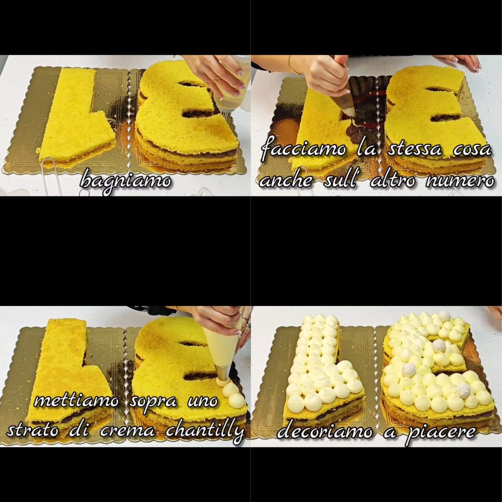 • soak it and proceed the same way with the other number. Spread a layer of chantilly cream on top using a piping bag and decorate as desired.