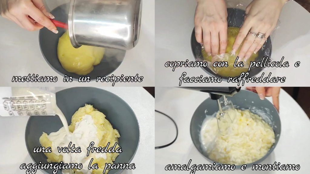 Transfer to a bowl, cover with plastic wrap, and let it cool. Once cool, add the cream and whip.
