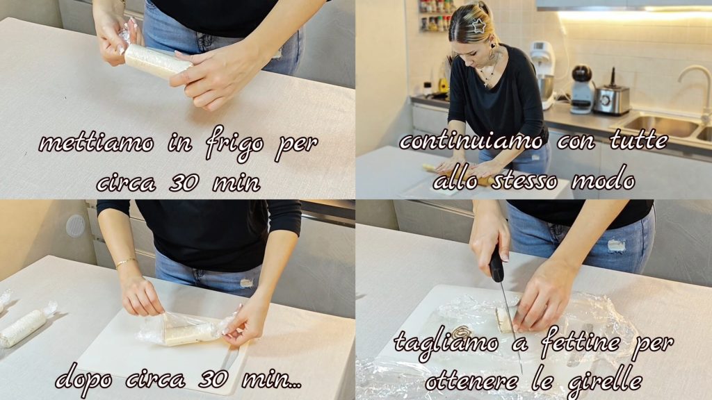 Put it in the fridge for about 30 minutes. Proceed in the same way with the other slices, changing the flavors of the spreadable creams. Put all the obtained rolls in the fridge for about 30 min (I made 5). After about 30 min, take the rolls and cut them into slices to obtain the rolls.