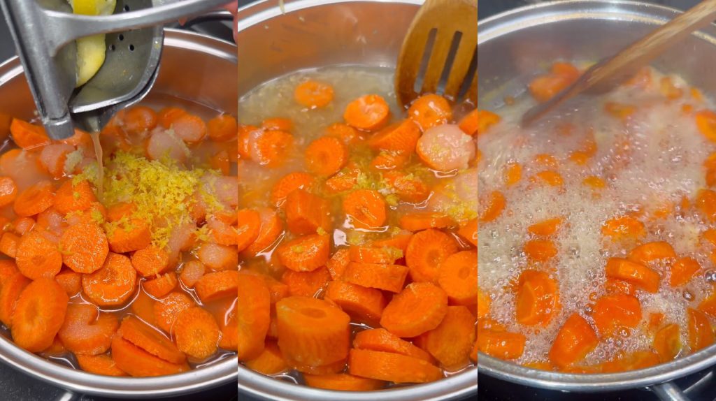add the lemon juice. Bring to the heat and cook for about 30 minutes, stirring occasionally, until the carrots are tender.