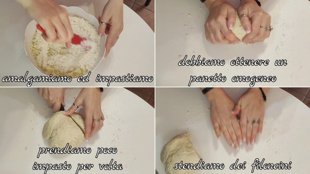 Combine and knead until you get a homogeneous dough. Take a little dough at a time and roll it into logs.