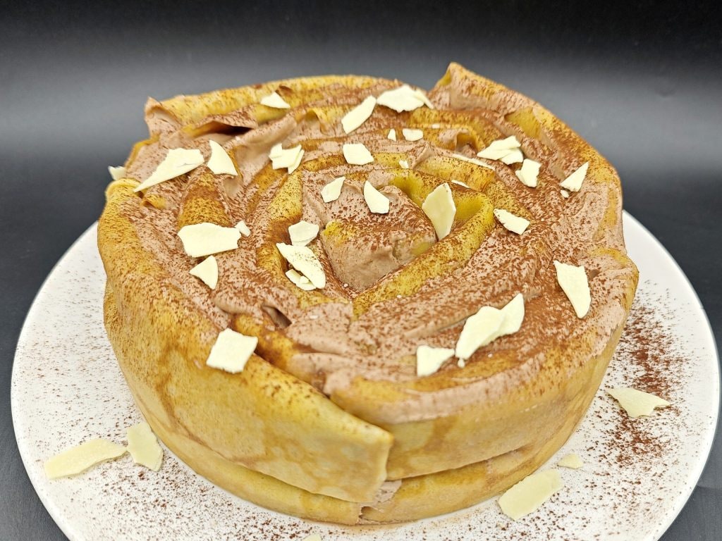 A delicious cake, very easy to prepare and excellent to serve on any occasion! I made the crepe base without eggs and then filled them with a chocolate cream also made without eggs. If you want to prepare a different cake from the usual ones and surprise your loved ones, try this recipe!