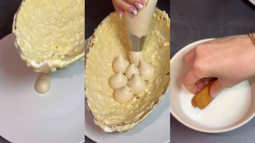 Chocolate Egg Filled with Lotus Cream and Lotus Cookies