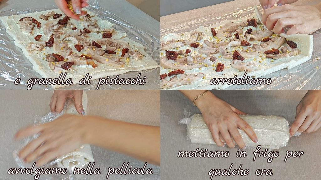 The preparation of the Christmas Log with Porchetta and Pistachio is very simple and quick and does not require cooking, watch the video HERE.