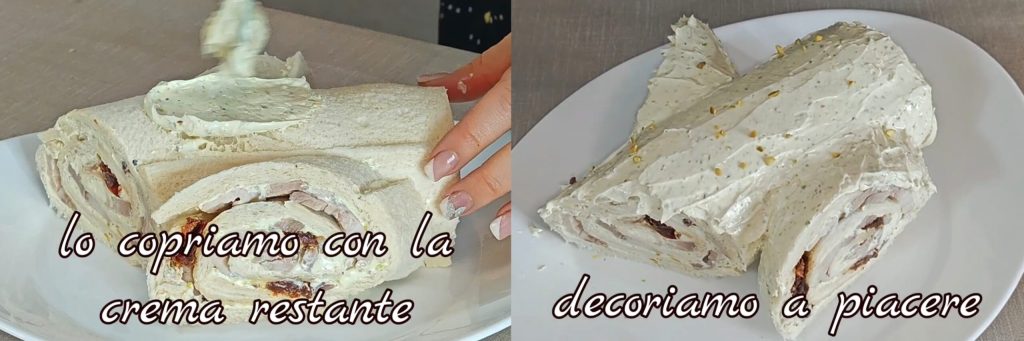 I love logs both sweet and savory and I think they are a great idea if we want to bring something spectacular and delicious to the table but at the same time simple and quick to prepare, this log is like that! A quick recipe that does not require cooking and is prepared in a few minutes, making it perfect for your Christmas, Christmas Eve or New Year’s menu. For the filling, I chose porchetta, cream cheese, sun-dried tomatoes, and pistachio pesto, a real delicacy!