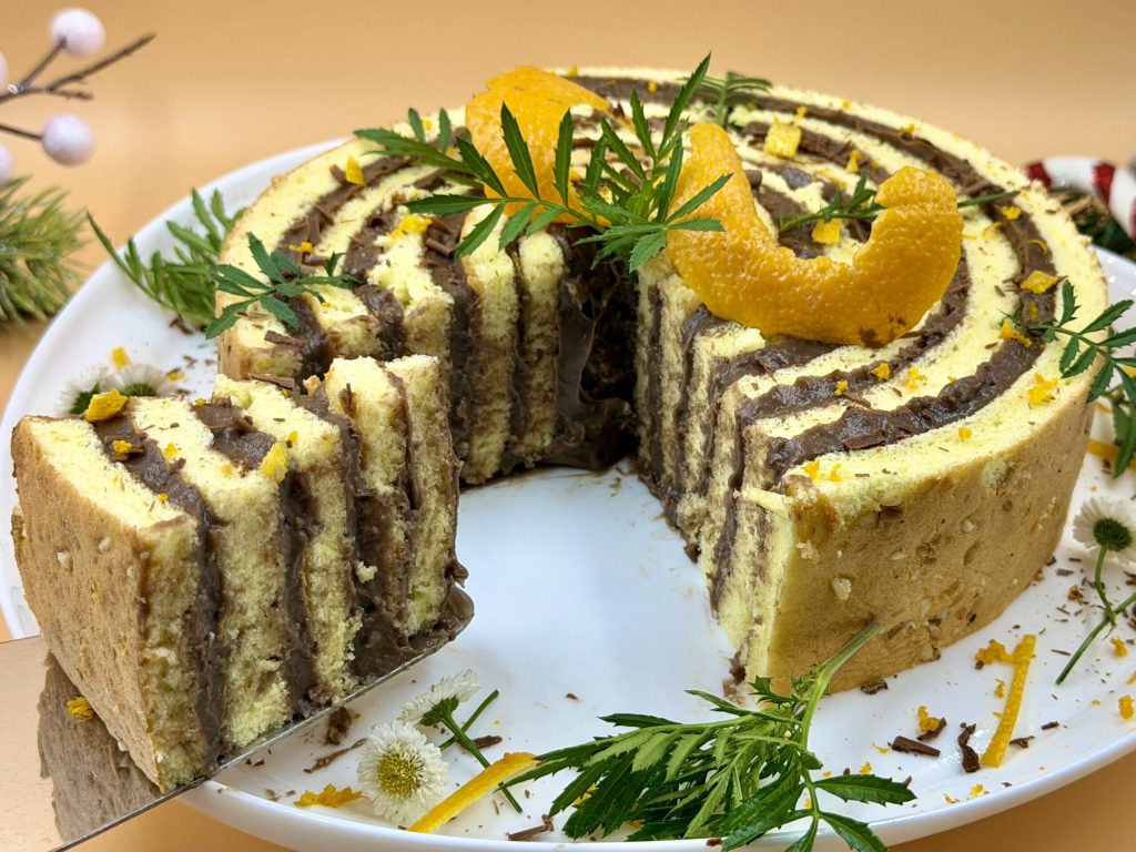 The Christmas Sweet Roll with Chocolate and Orange Cream is the perfect dessert for the holidays: soft, fragrant, and scenic. The oil and citrus base is light and soft, while the dark chocolate and orange filling gives it a rich and elegant taste. Decorated with powdered sugar and candied orange peels, it will bring a refined touch to the Christmas table. A simple yet impressive recipe, ideal to prepare in advance and serve as a festive dessert.