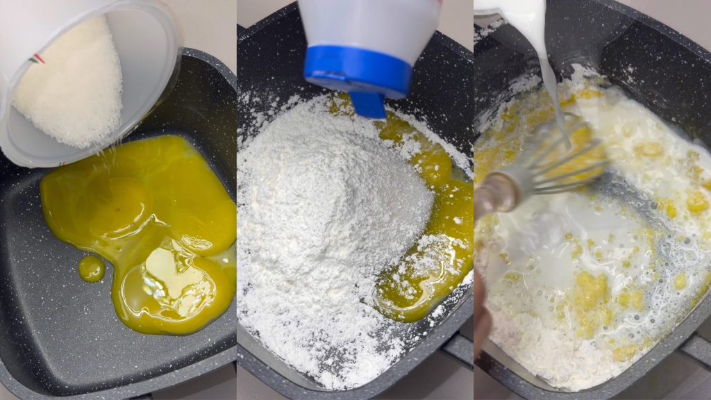 • Add grated orange zest, sifted flour and gently fold in the beaten egg whites, mixing from bottom to top.