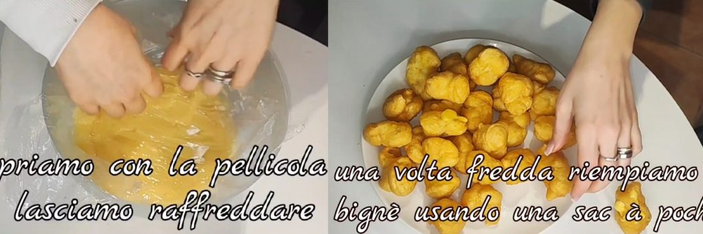 cover with food wrap and place it (if possible) in the freezer or fridge! Once cold fill the cream puffs using a piping bag.