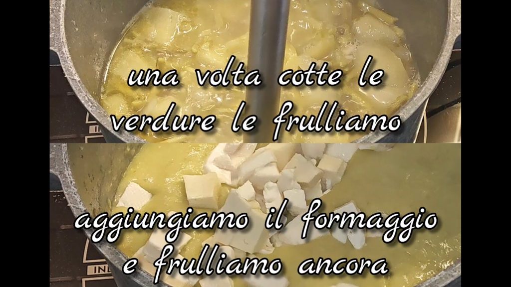 Once the vegetables are cooked, blend them with an immersion blender, then add the cheese and mix everything well.