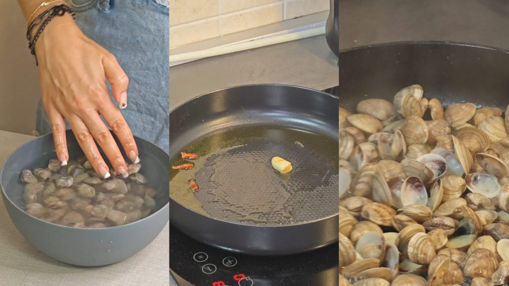 Place the clams in salted water for at least 1 hour, changing the water several times to remove the sand.Preparing the sauce