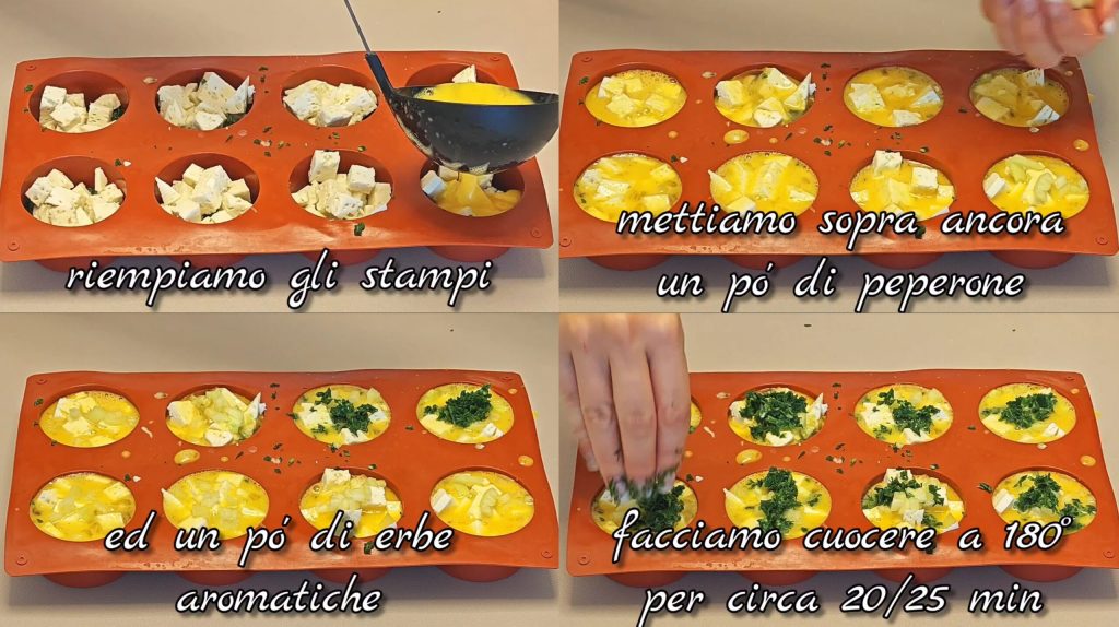 You will get soft, colorful and fragrant egg muffins, perfect as a simple but very cute Easter appetizer to present at the table.