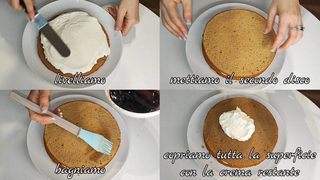 level, and place the second disc on top. Soak and cover the entire surface with the remaining cream.