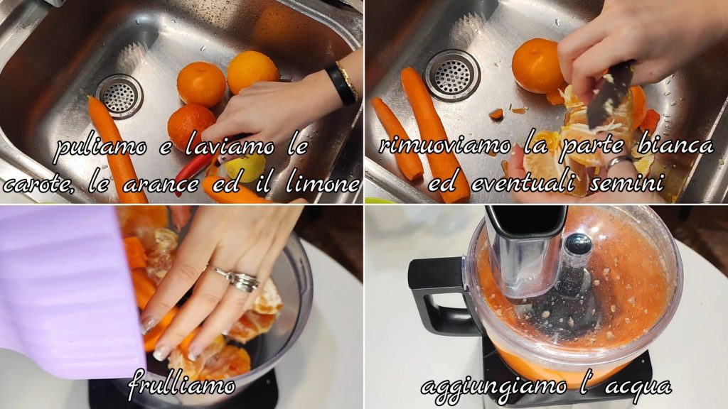 First, we need to clean and wash the carrots, lemon, and oranges thoroughly. Remove as much of the white part and seeds from the oranges and lemon as possible. Blend and add the water.