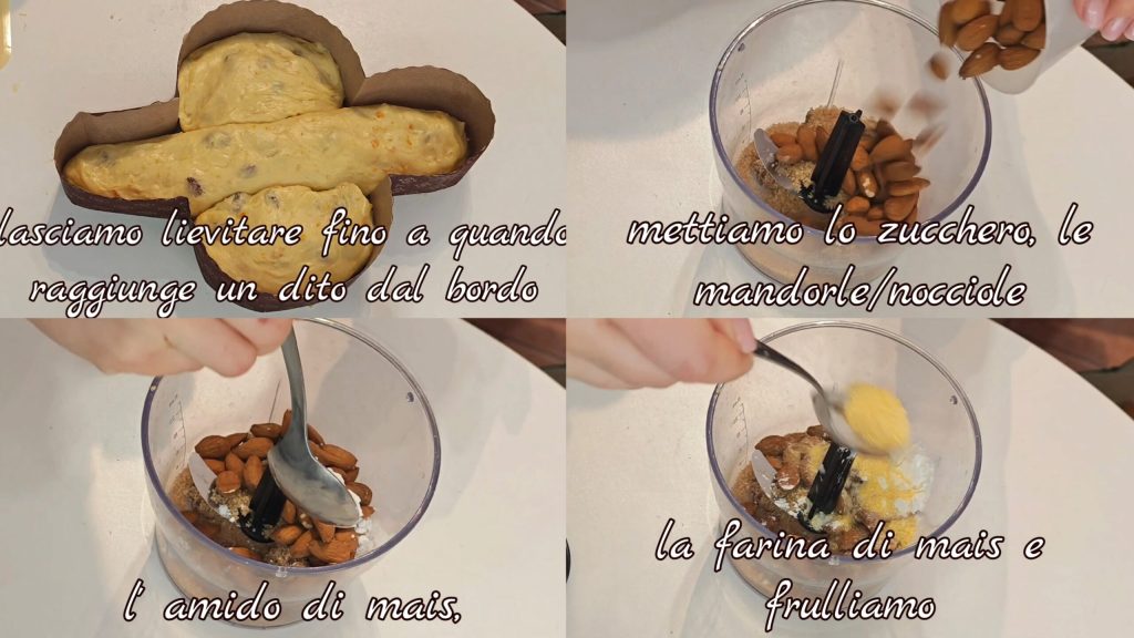 Put the sugar, almonds/hazelnuts, cornstarch, cornmeal and blend.