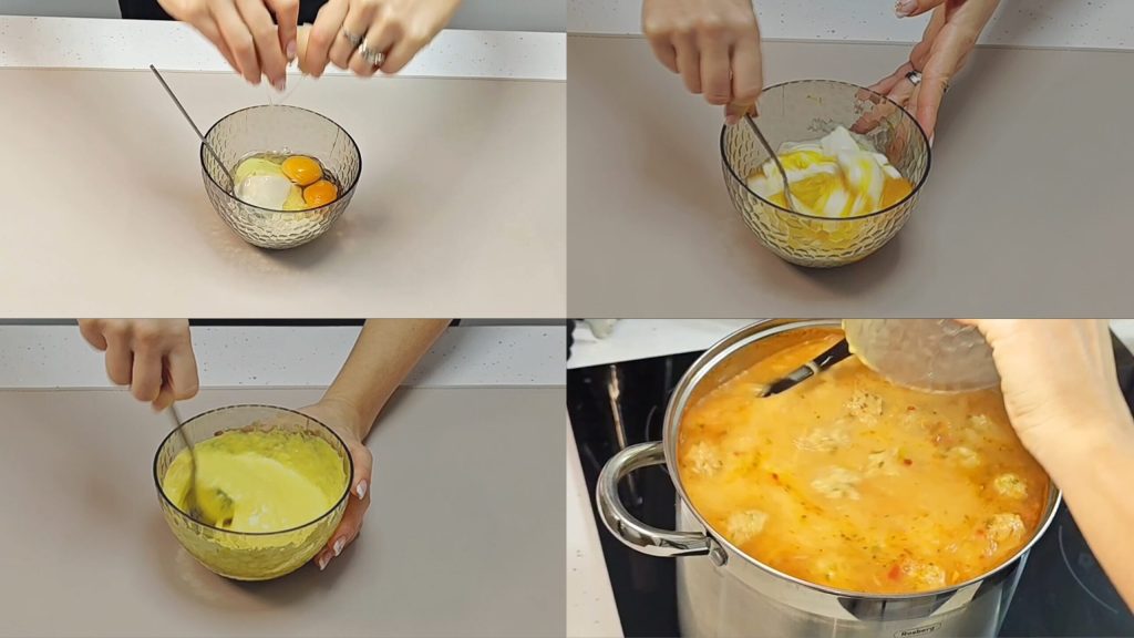• In a bowl, put the yogurt, the eggs, the salt, and mix. Add a little broth then put the obtained mixture into the broth at the end of cooking.