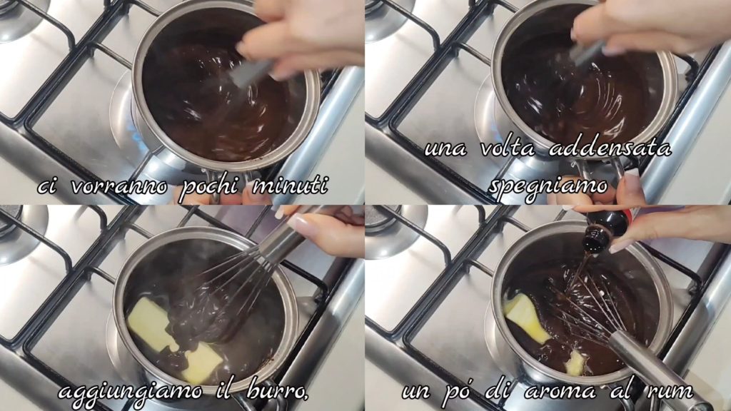 Once thickened, turn off the heat, add the butter, rum essence, and mix. Cover with plastic wrap and let cool. Add the butter, rum essence.