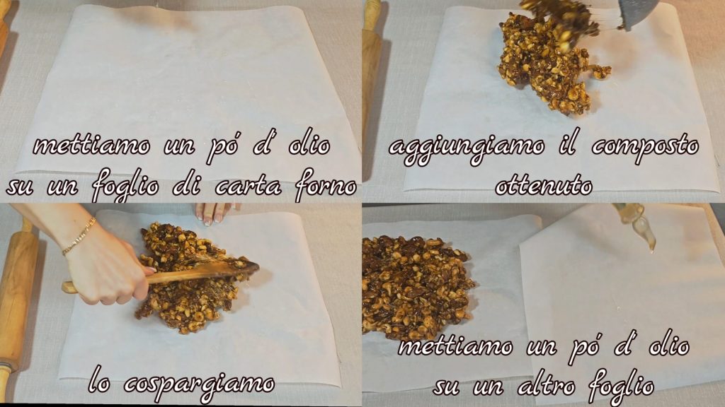 Put a little oil on the parchment paper, add the mixture obtained, and spread it. Put a little oil on another sheet of parchment paper