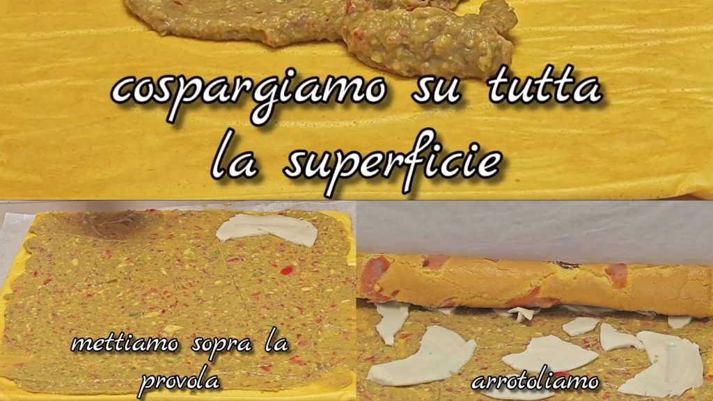 Sliced, the roll becomes a scenic and colorful appetizer, perfect to serve during the holidays and surprise friends and family with a light and refined taste.