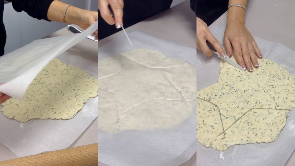Cover with another sheet and cut the star-shaped outlines. Bake in a preheated oven at 350°F for 12-15 minutes until golden and let cool.