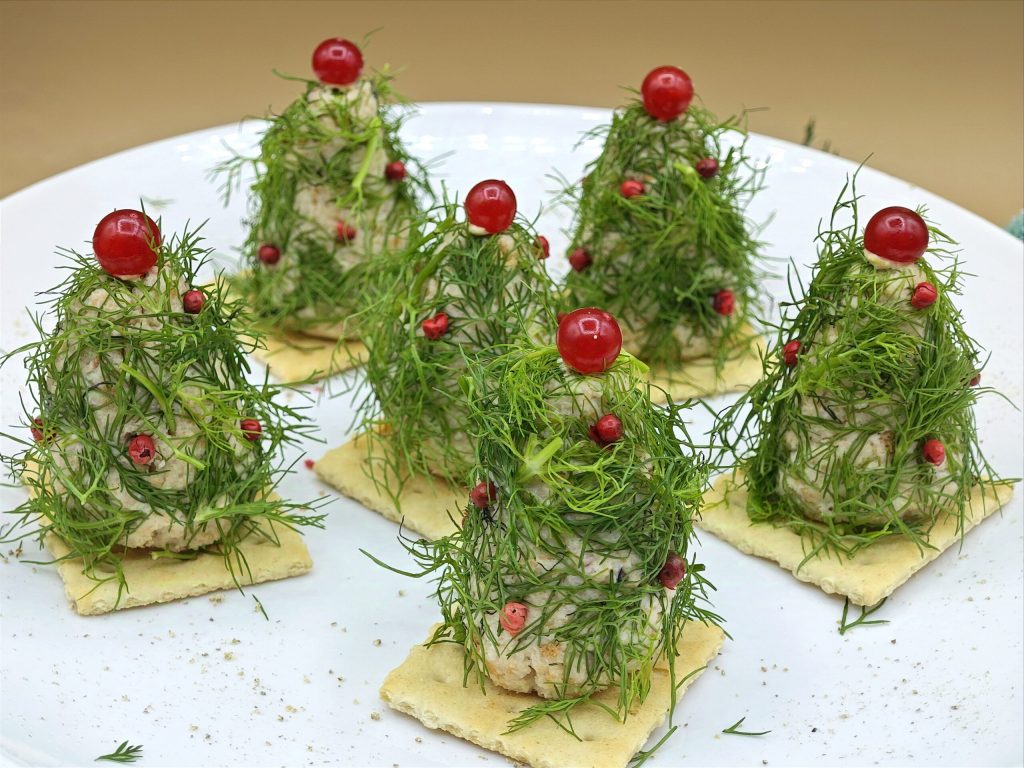 Another appetizer with a Christmas theme, very simple and quick to prepare that does not require cooking. Trees made with sandwich bread and olive mousse then covered with wild fennel and decorated with pink peppercorns and red currants!!! They are really very, very cute to bring to the table for Christmas lunch, the Christmas Eve or New Year’s Eve dinner! If you want, you can prepare more flavors using various creams or sauces to taste!