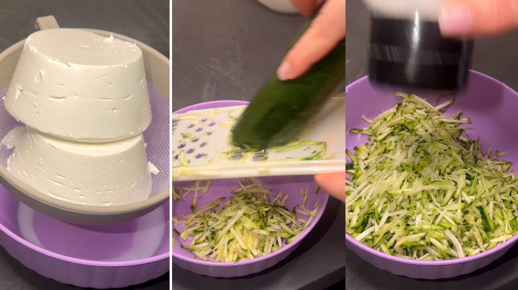 Grate the zucchini, add a pinch of salt and let rest for a few minutes.