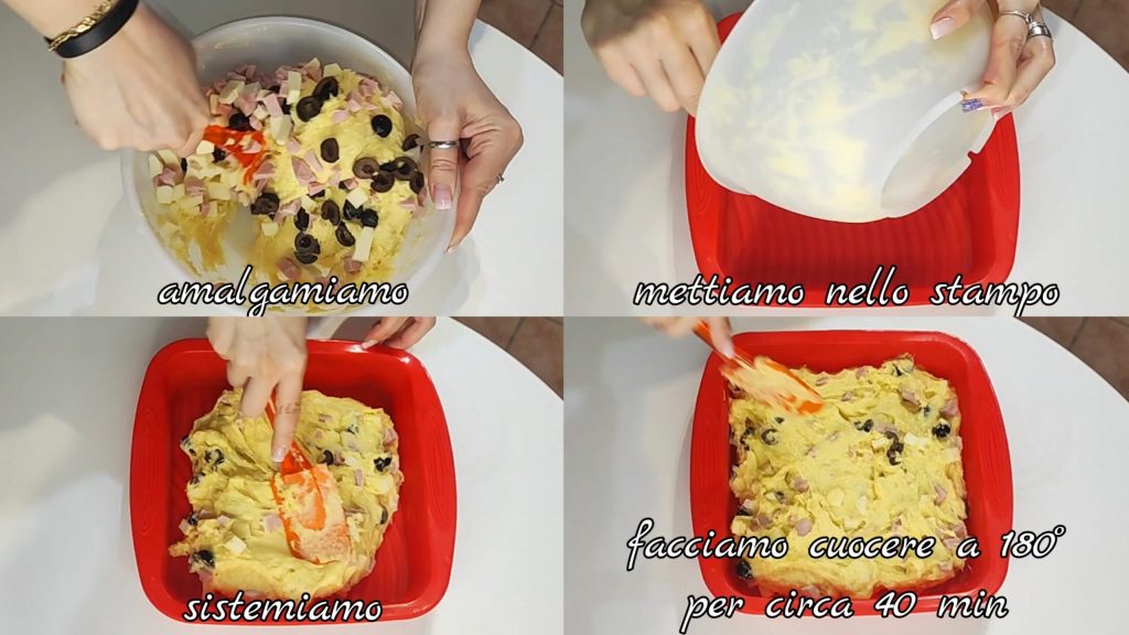 For the preparation of the savory pie with ham and olives, watch the video HERE.