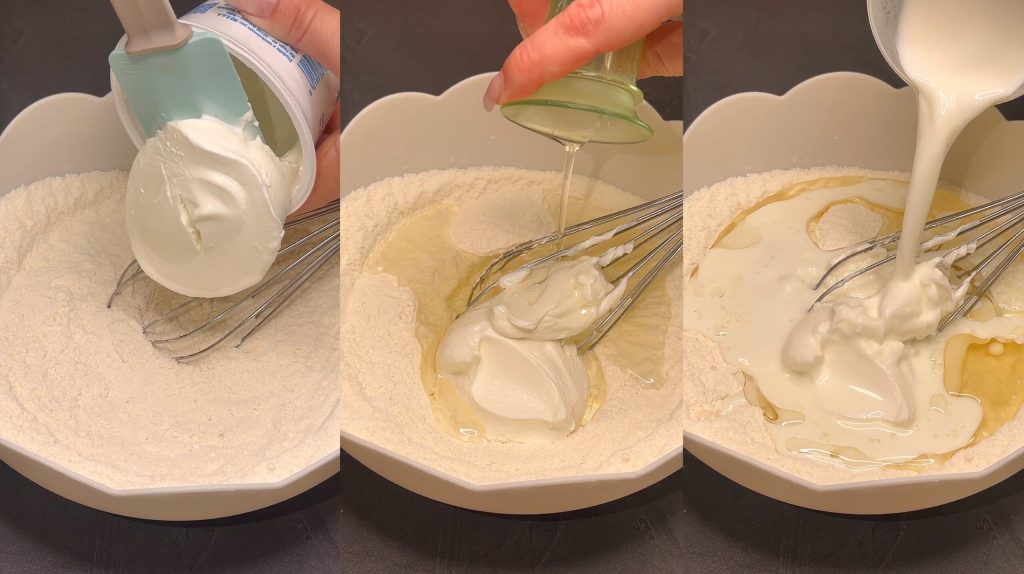 Add the yogurt, oil and milk, and mix until you get a smooth, homogeneous batter.