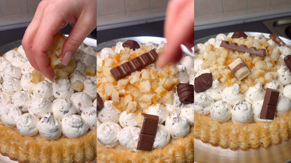 Finish with additional chopped Kinder pieces.