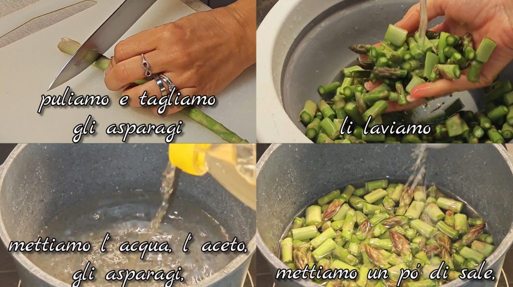 When the water boils, add the asparagus