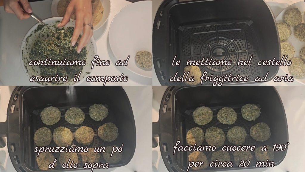 My husband went to buy vegetables and came back with two bags of Swiss chard 🙈 so I sautéed some in the pan, some with potatoes, some with cherry tomatoes, but there are still some left 🤣 so a quick look in the fridge found some open soft cheese I needed to “use up“, and I got the idea to make these small meatballs. I must say, I didn’t expect it, but they turned out wonderfully 😍 then I chose to cook them in the air fryer and didn’t use eggs, so they are also very light ☺️. If you don’t have an air fryer, no problem, you can bake them in the oven or fry them in a pan with a bit of oil!