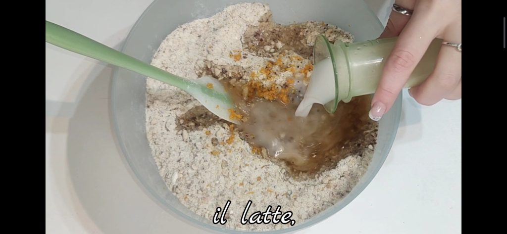 Add a bit of orange zest, oil, liqueur, plant-based milk, and mix all the ingredients well. Brush with oil or margarine the mold and flour it.