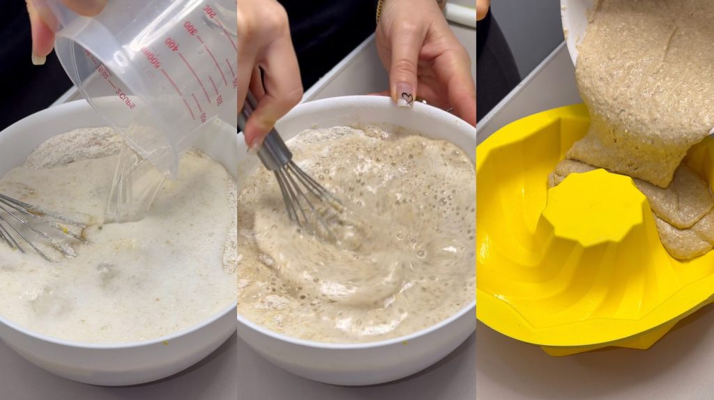 • add the sparkling water and a little vanilla extract. Mix well until you obtain a smooth and homogeneous batter. Pour the batter into a bundt cake pan.