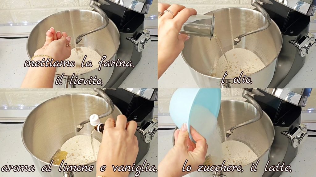 Place the flour, yeast, oil, lemon flavoring, vanilla, sugar, and milk