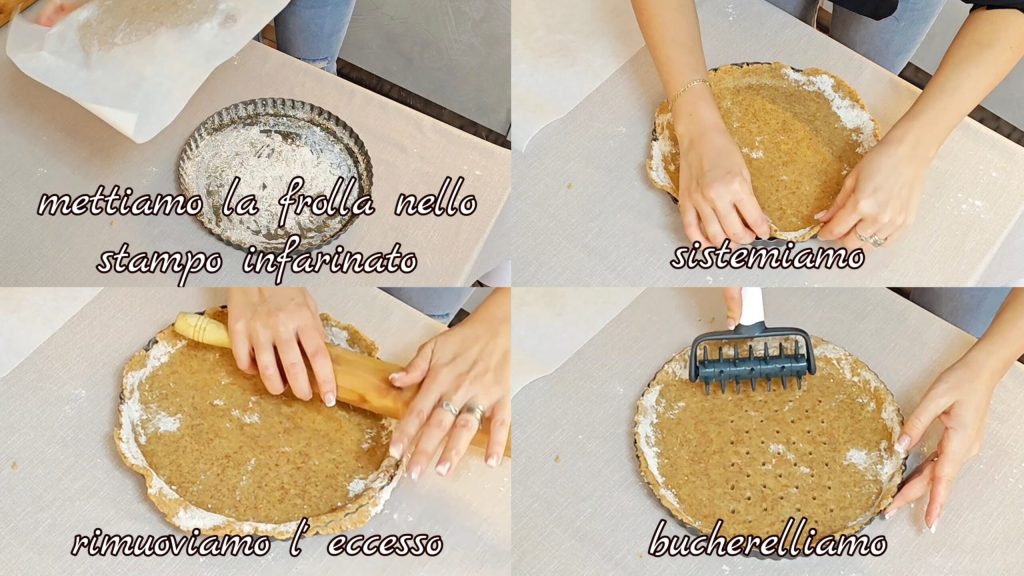 Place the shortcrust in the floured mold, adjust and possibly remove excess shortcrust. Prick the bottom.