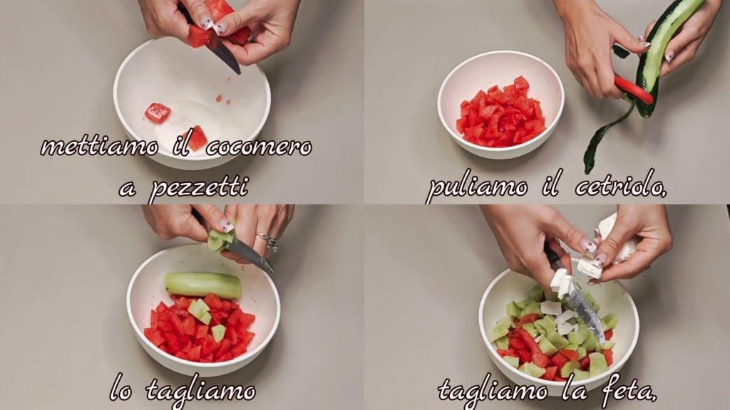 A different salad made with a mix of fruit, vegetables, and cheese that together made me discover my new favorite salad ☺️ If you like sweet/savory combinations, try this recipe. I’ve heard that many people eat watermelon with lemon, but I didn’t think I would like it 😁 instead, I was wrong, watermelon combined with lemon, cucumbers, and feta is a SPECTACLE!