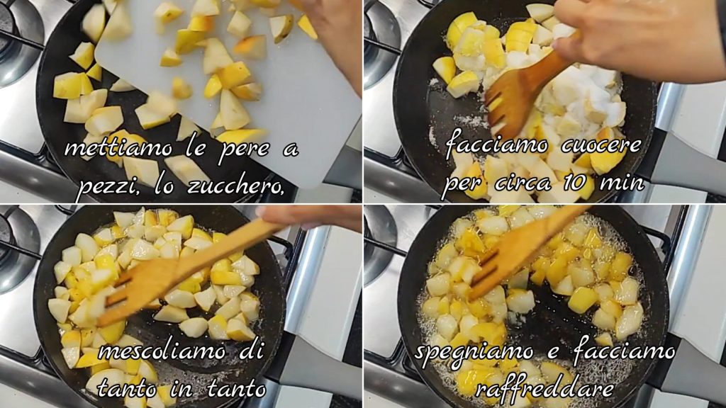 In a saucepan, place the chopped pears and sugar, and cook for about 10 minutes, stirring occasionally. Turn off the heat and let it cool.