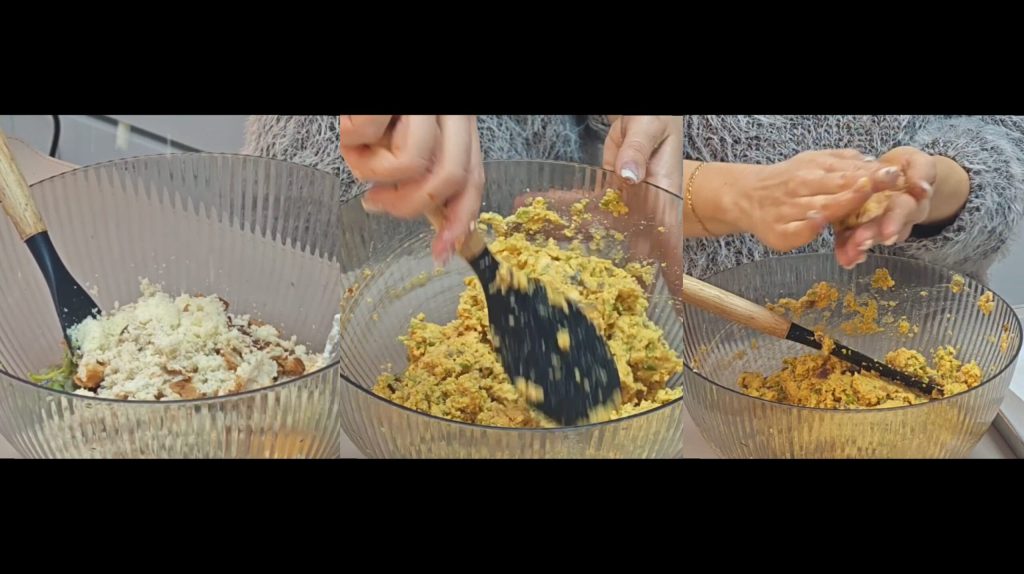 grated parmesan and breadcrumbs. Mix well until you obtain a soft but moldable mixture.